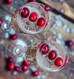 Wil je je gasten stijlvol ontvangen met een heerlijk welkomstdrankje? Kies dan een makkelijke cocktail die zo klaar is. Denk bijvoorbeeld aan een glaasje prosecco met een cranberry skewer. Super lekker en heel makkelijk de dag van tevoren al voor te bereiden. Rijg een stuk of 4 cranberry’s op een stokje en rol deze door de suiker. Leg ze in de vriezer en haal ze er vlak voor het serveren uit. Vul een glas met de prosecco en garneer met de cranberry skewer.