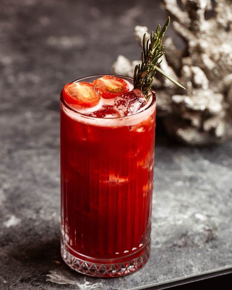- Vul de gin aan met cranberry sap en meng tot het een geheel is.