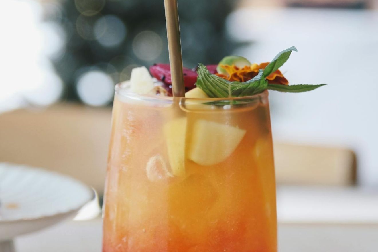 Fruitige accenten - Voeg een schijfje sinaasappel of een partje perzik toe aan de rand van het glas. Dit voegt niet alleen een kleurrijk en smakelijk accent toe, maar past ook perfect bij de fruitige smaken van de cocktail.