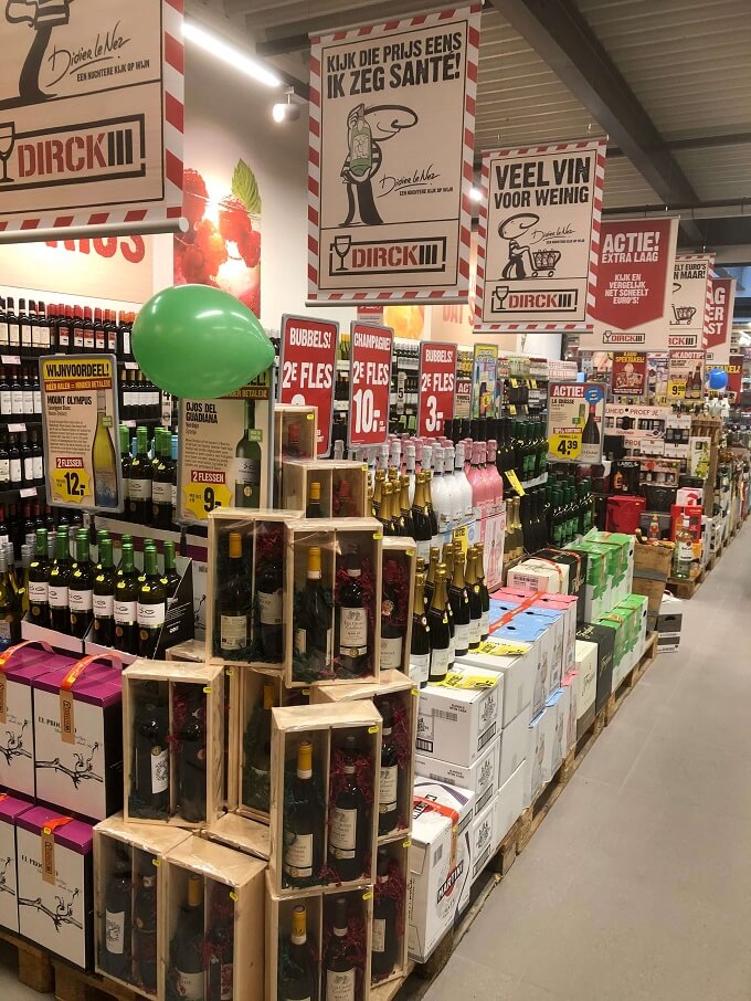 Jeroen Roovers, slijterij manager van de nieuwste DirckIII, voegt toe: “ Ook voor de beste kado’s ben je bij ons aan het juiste adres. Uiteraard ook voor de laagste prijzen en we pakken het graag feestelijk voor je in. Wij hebben al zeer lage prijzen, maar daar bovenop hebben we ook nog eens wekelijks spectaculaire aanbiedingen, extra voordeel partijen en verassende kanskoopjes. Komt dat zien! Ons deskundige team staat graag voor je klaar.”