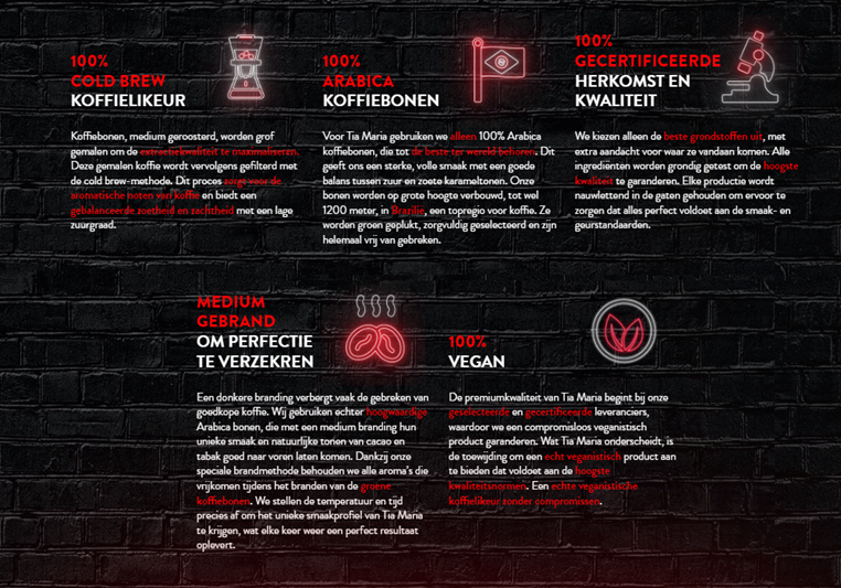 Wat Tia Maria zo speciaal maakt, begint bij het uitzoeken van hoogwaardige ingrediënten. Alleen grondstoffen van de beste kwaliteit met 100% gecertificeerde herkomst worden gebruikt.